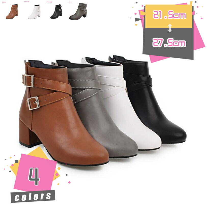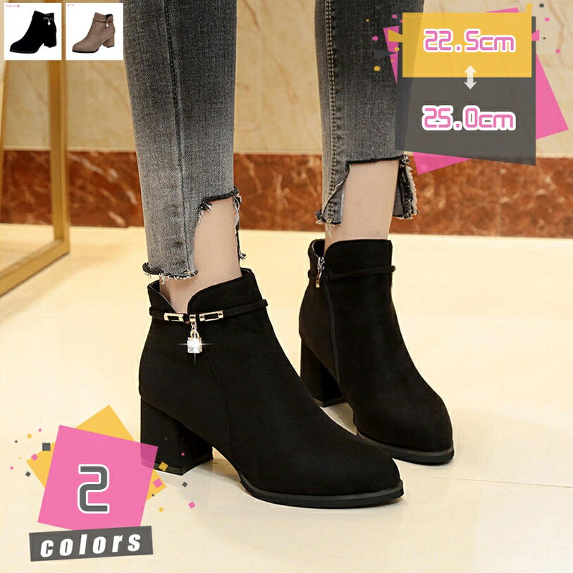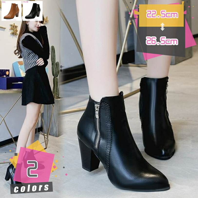 ブーツ レディース ショートブーツ ジップ ポインテッドトゥ 太ヒール チャンキーヒール 厚底 ショ・・・