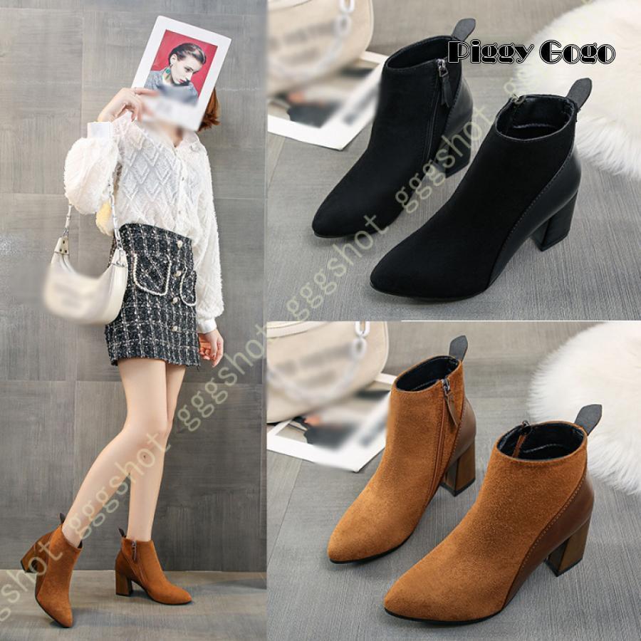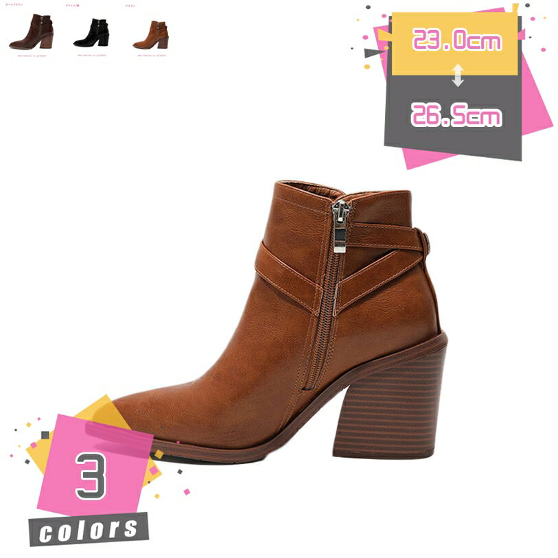 ポインテッドトゥ 歩きやすい チャンキーヒール ブーティ 4.2センチヒール ローヒール レディース・・・