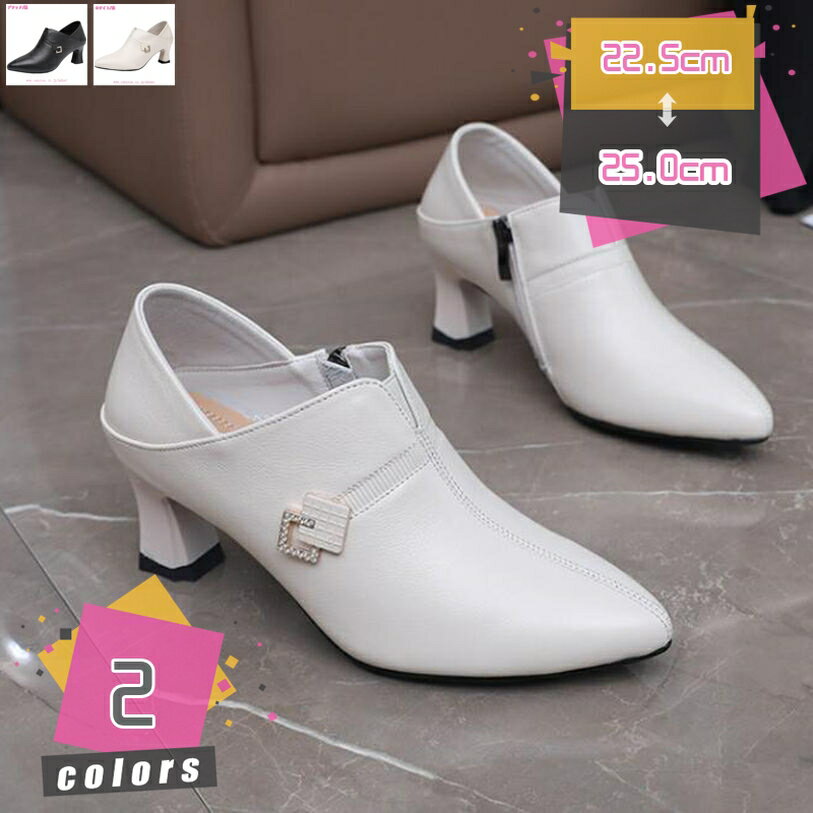 レディース ブーティ ショートブーツ サイドゴア 本革 ラウンドトゥ 太めヒール 美脚 ポインテッド・・・