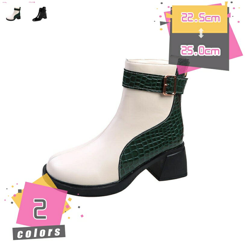 レディーズ 靴 ハイヒール ラウンドトゥ 太ヒール かわいい クロコ センターライン バイカラー お・・・