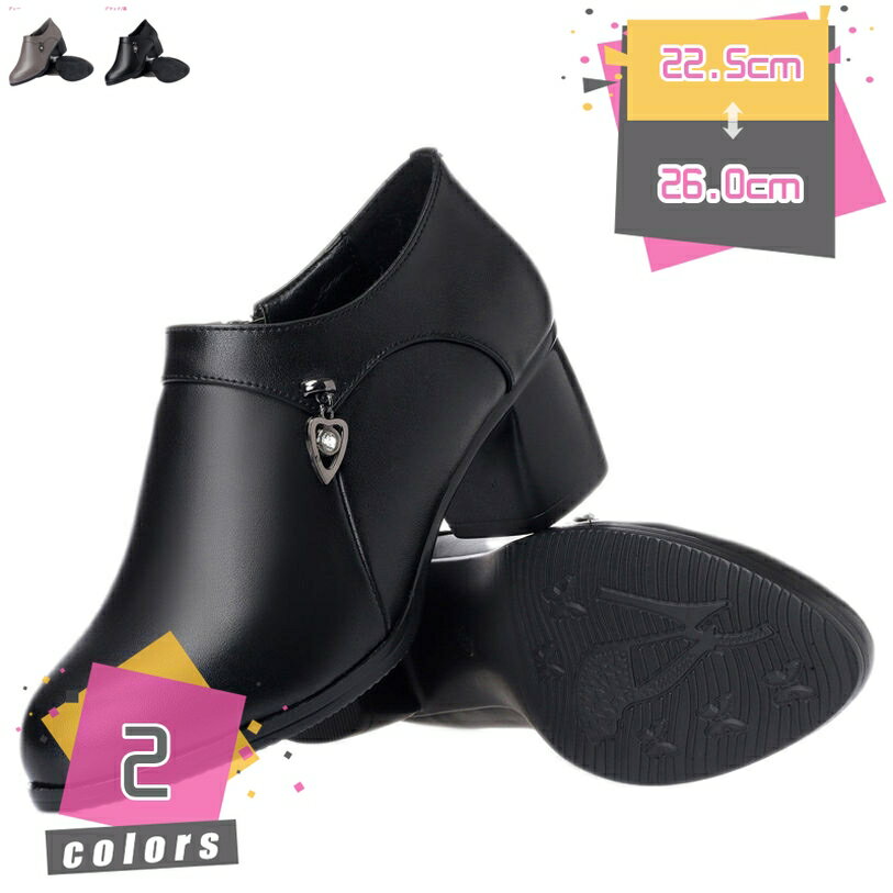 ブーツ ショートブーツ 滑り止め レディース おしゃれ エレガント 美脚 太ヒール 歩きやすい ブー・・・
