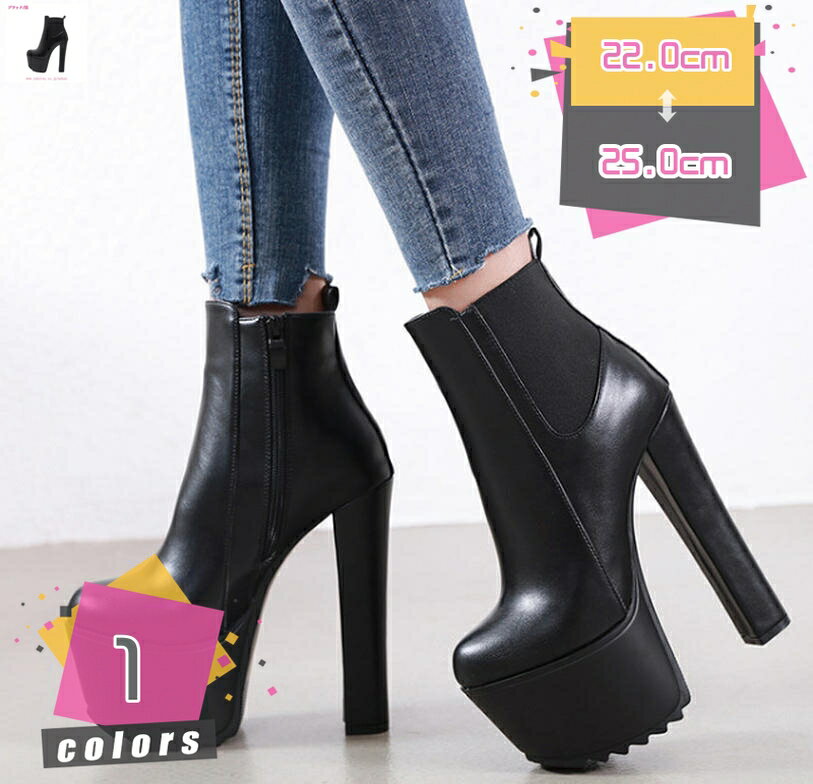 ショートブーツ ブーティ 厚底靴 チャンキーヒール レディース ブーツ ハイヒール 16cm おしゃ・・・