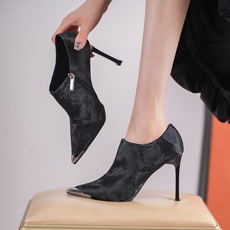 ポインテッドトゥ ブーツ レディース ブーティー ブーティ バックファスナー ピンヒール ミドル丈 ・・・