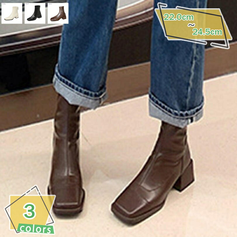 ブーティー きれいめ シンプル ショートブーツ ポインテッドトゥ 韓国系 ローヒール こなれ感 レザ・・・