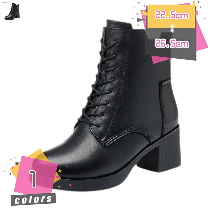 太ヒール ブーツ ショートブーツ レディース 厚底 編み上げ サイドファスナー 歩きやすい シンプル・・・