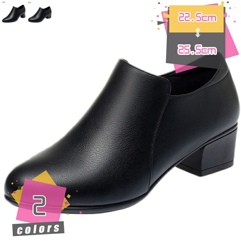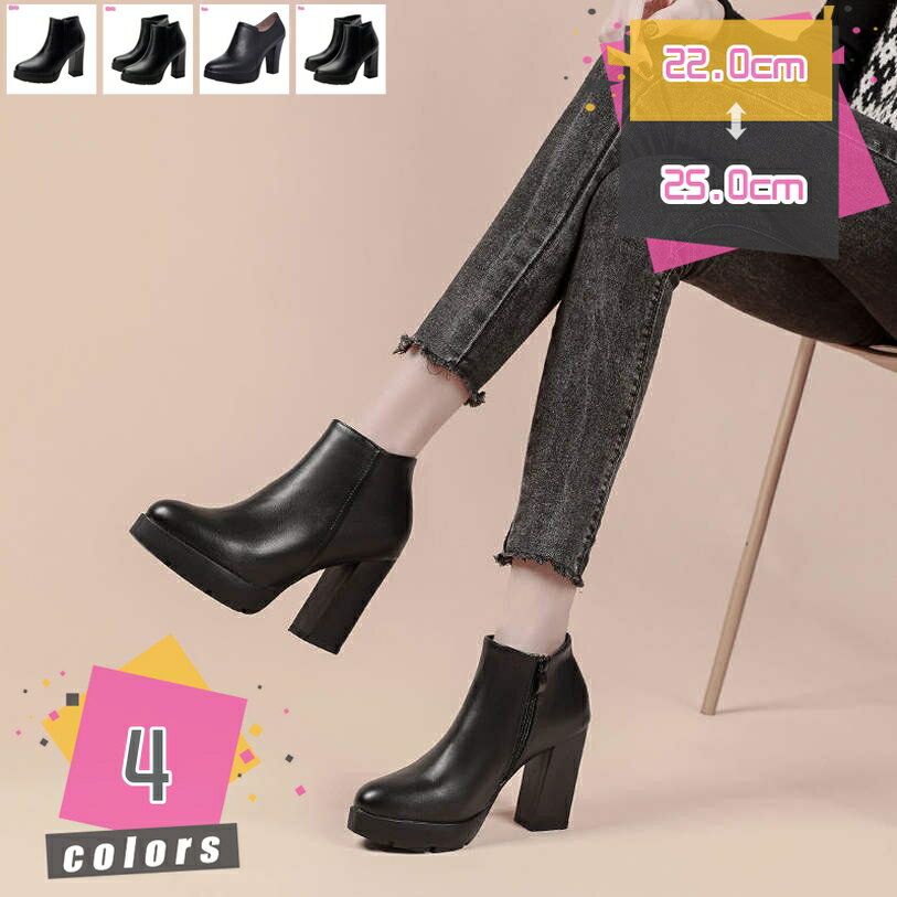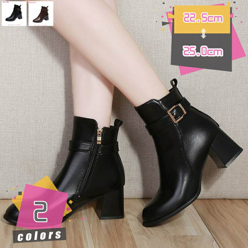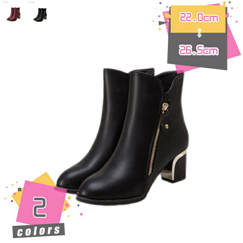 レディース アンクルブーツ アンクル丈 太ヒール ショートブーツ サイドジッパー付き チャンキーヒー・・・