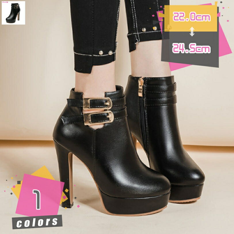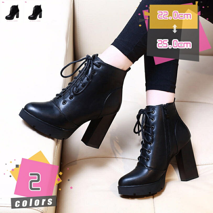 ショートブーツ 厚底 靴 ヒール ブーティ レディース ブーツ ブーティー ショート 太ヒール 安定・・・