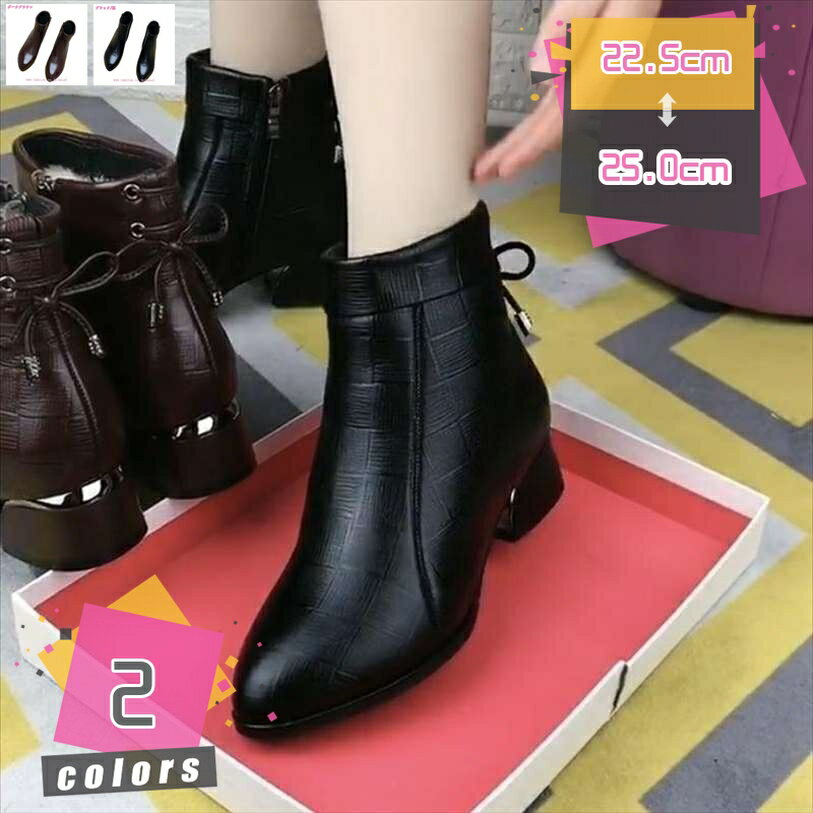 ブーティー ショートブーツ リボン 黒 美脚 ポインテッドトゥ サイドジップ アンクル丈 カジュアル・・・