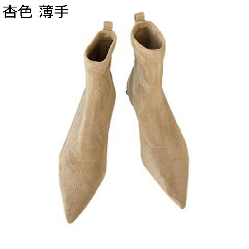 レディース ショートブーツ ブーティ ハイヒール ポインテッドトゥ フラット インヒール スエード ・・・