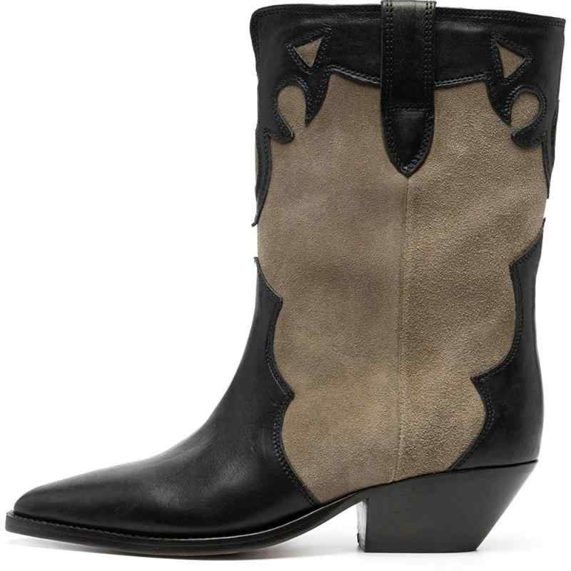 ショートブーツ レディース ポインテッドトゥ ローヒール ミドル丈 牛革 本革 レザー デニム スリ・・・