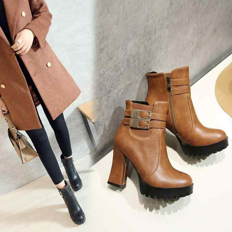 ショートブーツ レディース 大きいサイズ 秋冬 欧米風 ラウンドトゥ 太ヒール ハイヒール ブーティ・・・