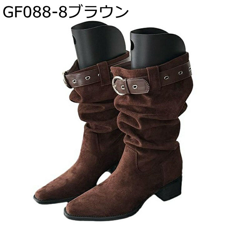 ブーティ レディース ショートブーツ 秋靴 冬靴 スクエアトゥ ベルト ドレープ ルーズ ウエスタン・・・