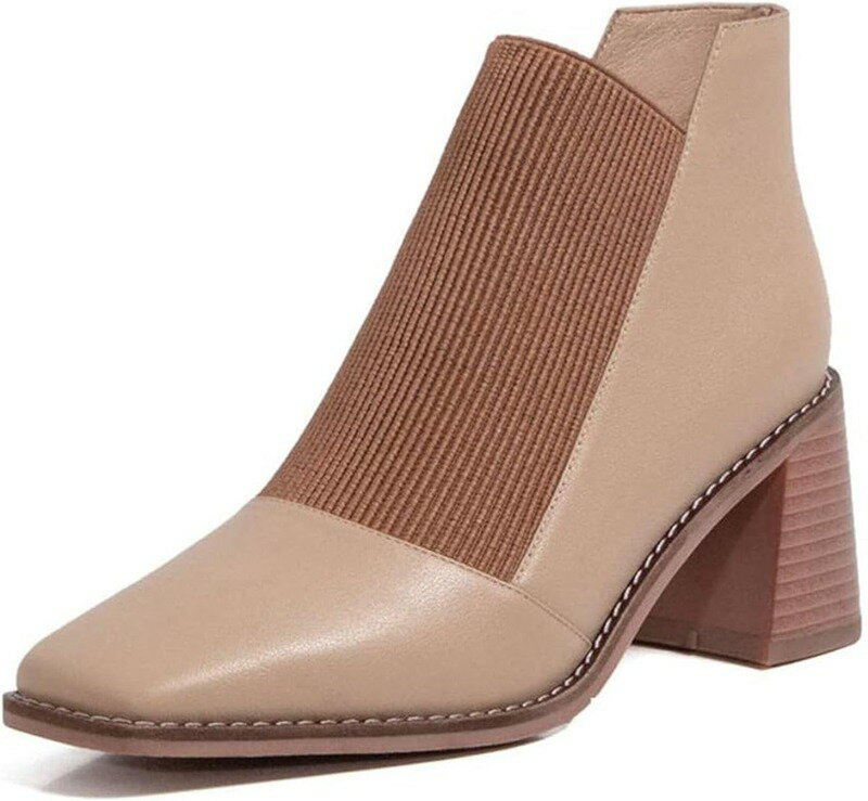 ブーツ レディース 羊革 本革 スクエアトゥ ハイヒール 太ヒール チャンキーヒール ブーティ スリ・・・
