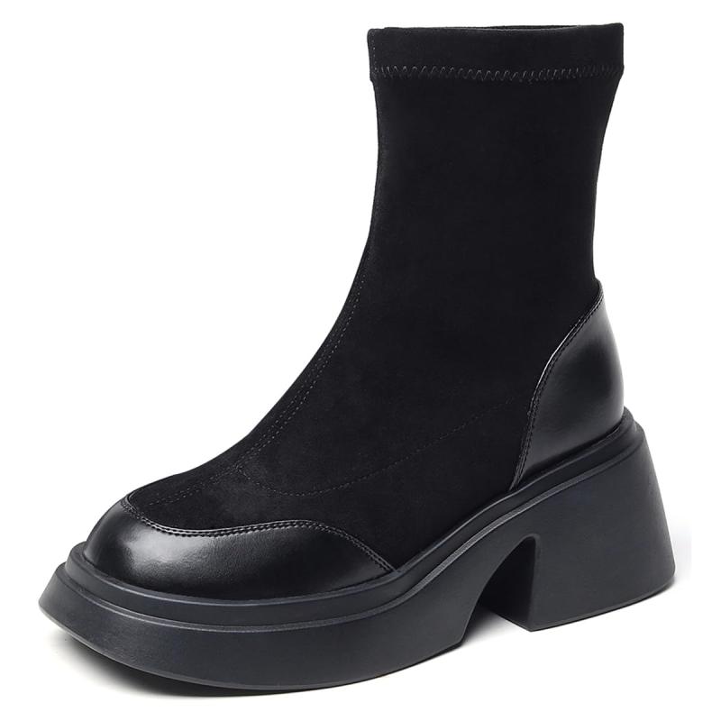 [Minax] ショートブーツ レディース ブーツ 黒 厚底 7cm 靴 歩きやすい スエード 美脚・・・