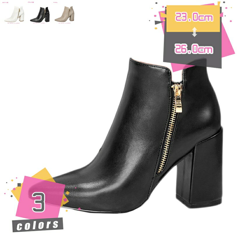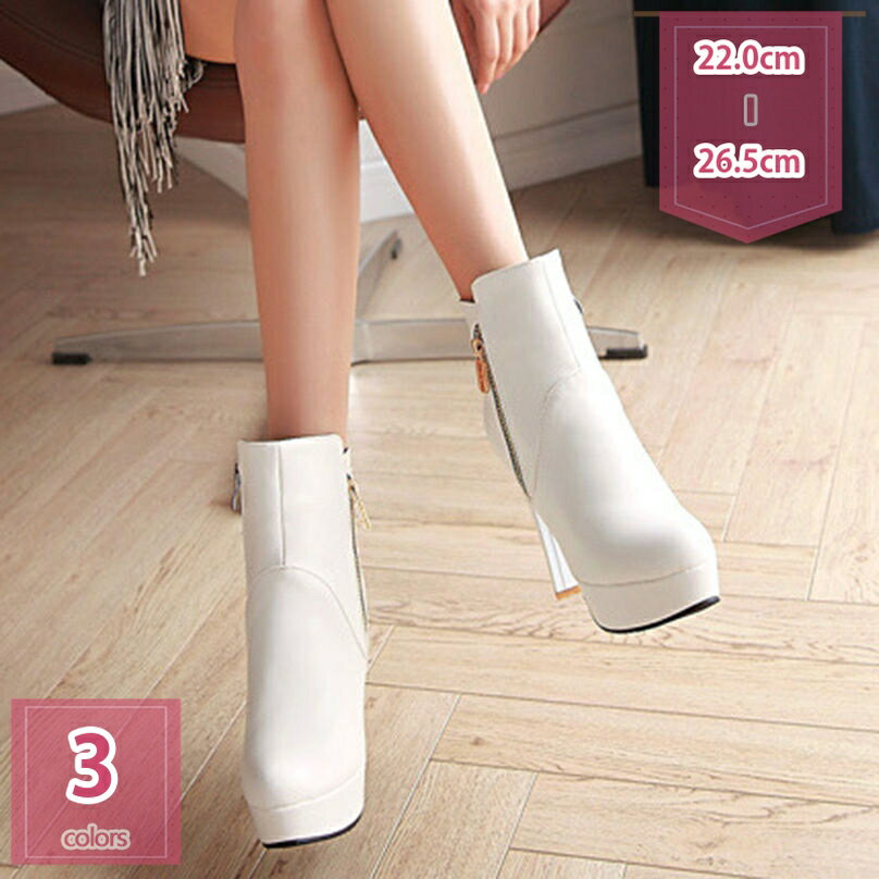 1000円OFFクーポン レディース ショートブーツ 厚底 黒 太ヒール ハイヒール サイドジッパー・・・