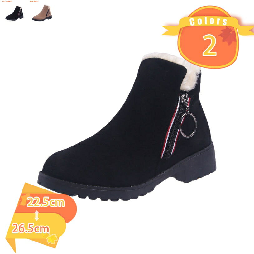 ショートブーツ レディース 裏起毛 レースアップ サイドジッパー付き スノーブーツ 厚底アンクルブー・・・