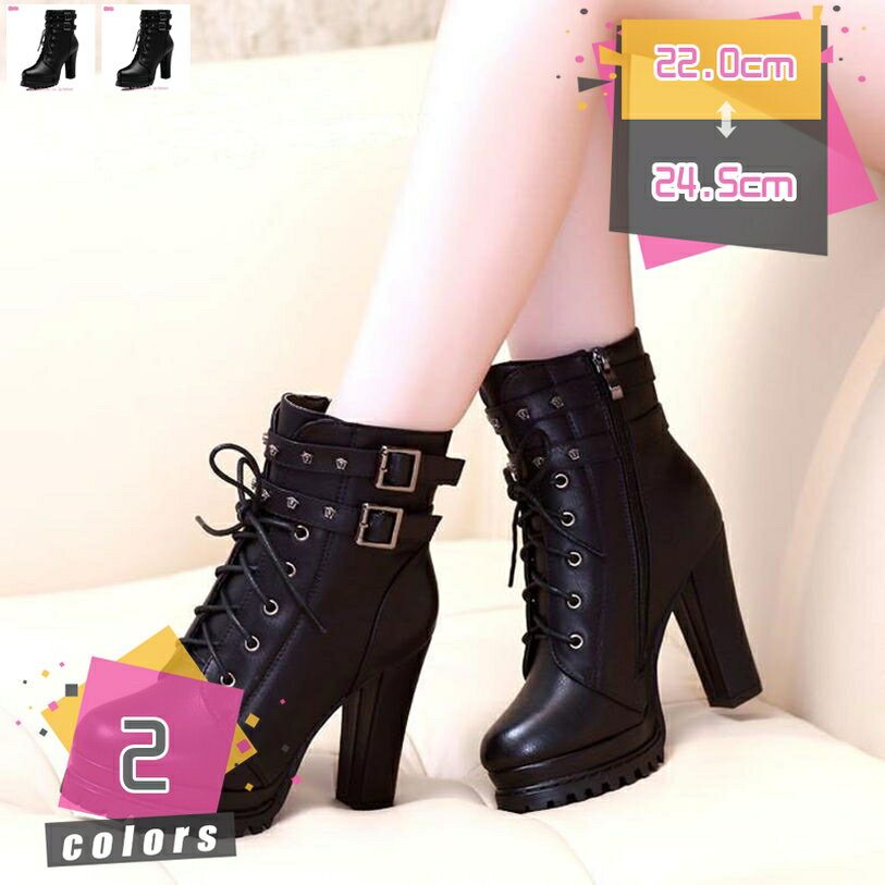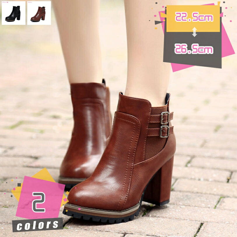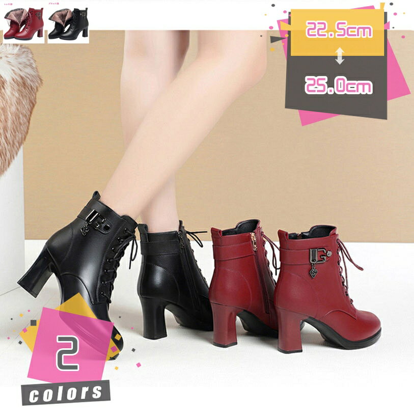 レディース クラシック ショートブーツ 太ヒール ブーツ ファスナー 美脚 ハイヒール カジュアルシ・・・