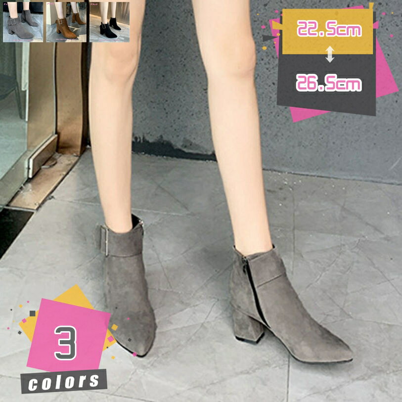 777円OFFクーポン ショートブーツ レディース スクエアヒール ポインテッドトゥ 太めヒール ス・・・