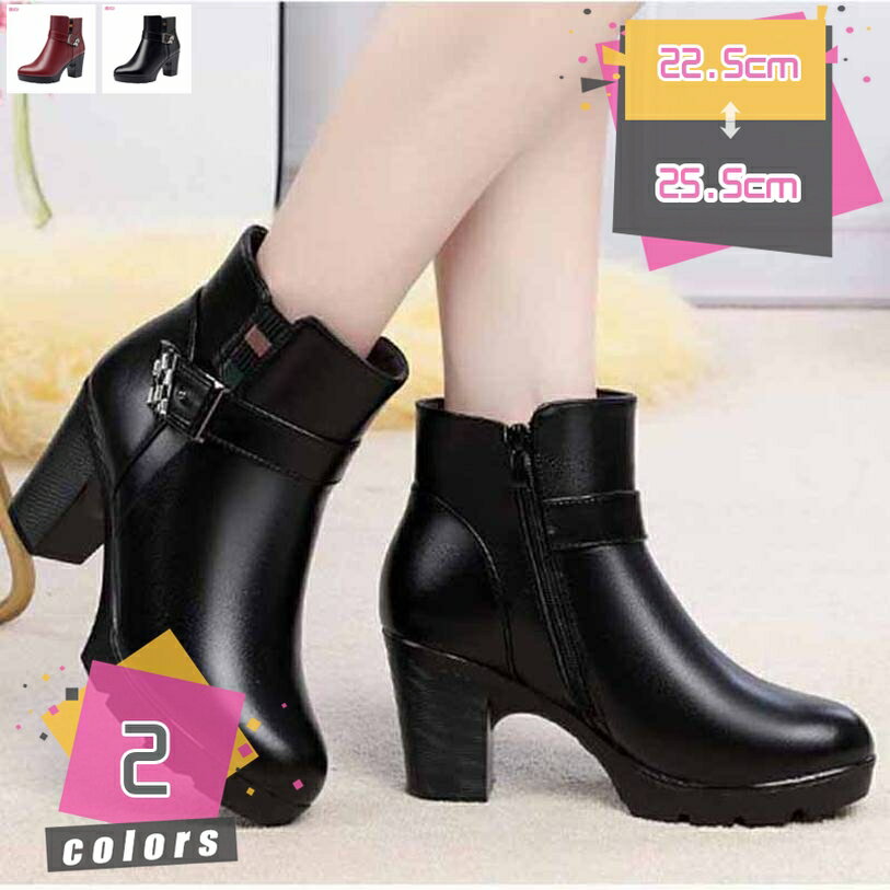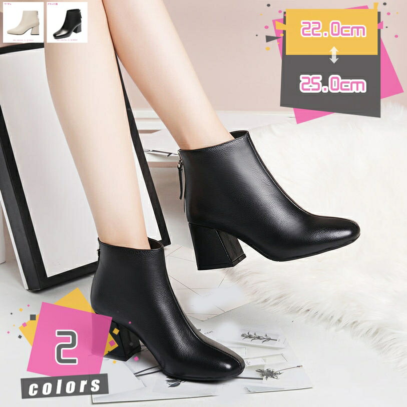 美しい4.5cmヒール 柔らか ショートブーツ 幅広 歩きやすい ショート レディース バックジッパ・・・
