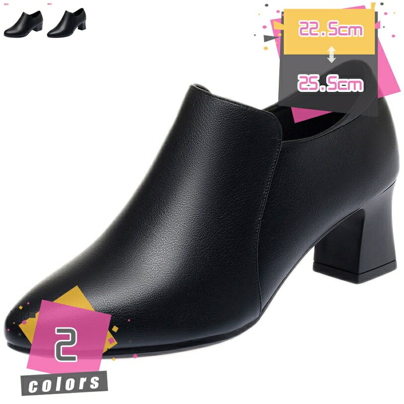 ショートブーツ パンプス ハイヒール 黒 ベージュ 歩きやすい 痛くない ポインテッドトゥ 太ヒール・・・