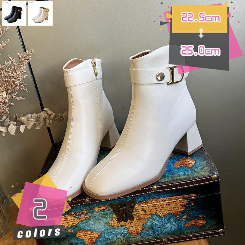 ショートブーツ レディース ブーツ チャンキーヒール 美脚 靴 くつ おしゃれ ハイヒール 歩きやす・・・