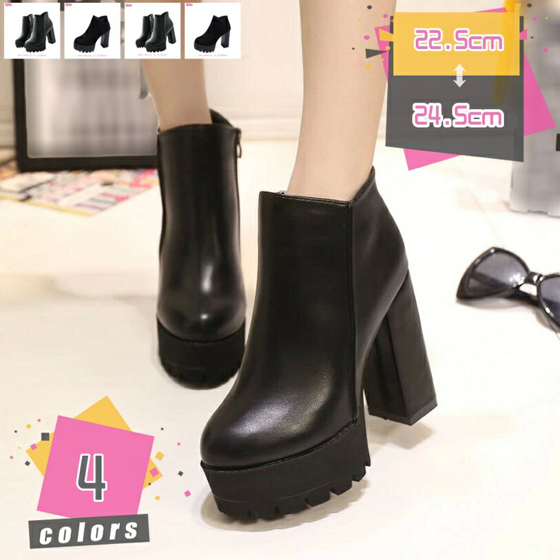1000円OFFクーポン ショートブーツ レディース 厚底靴 美脚 チャンキーヒール ミドルブーツ ・・・