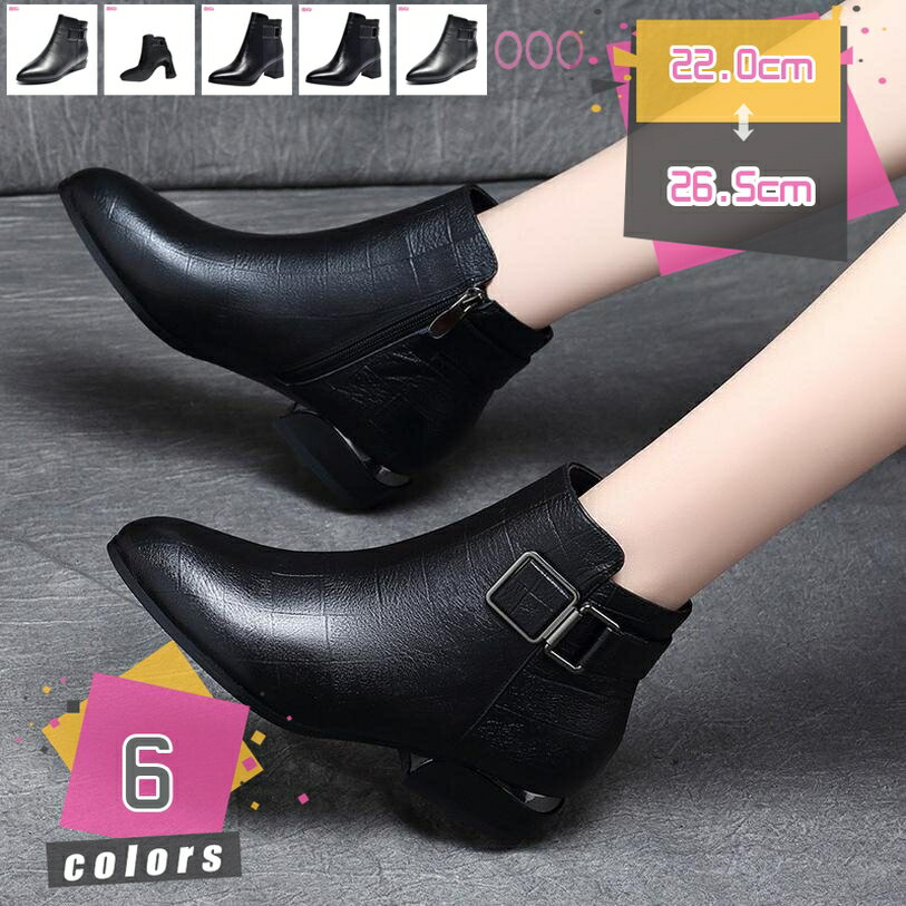 ローヒール 太ヒールブーツ レディース ブーツ チャンキーヒール ポインテッドトゥ ショートブーツ ・・・