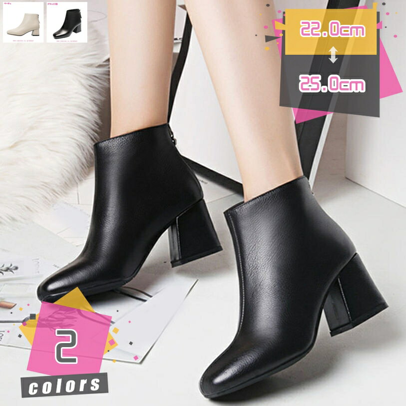 歩きやすい 美脚 ショートブーツ レディース スクエアトゥ レザー調 PU ブーツ バックジップ ミ・・・