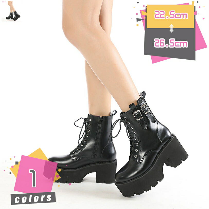 レディース ブーツ 編み上げブーツ 秋冬 美脚 白 歩きやすい チャンキーヒール 編み上げ サイドフ・・・