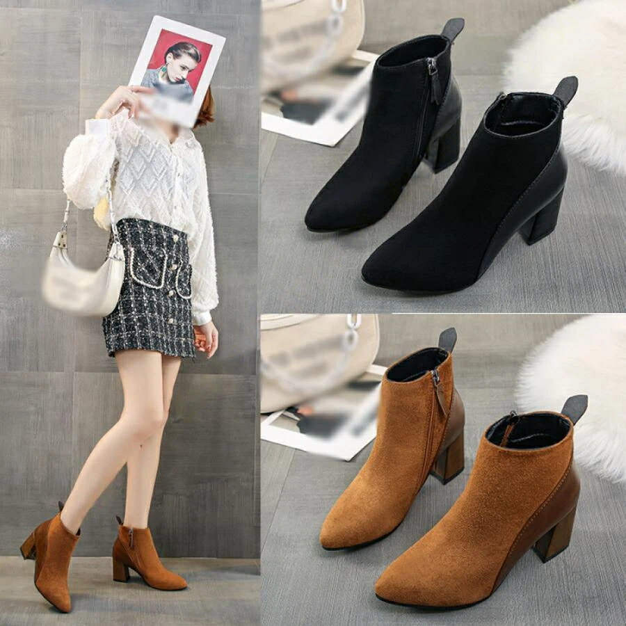 ショート丈 ブーティ ショートブーツ アンクルブーツ 痛くない 7cmヒール ブーティー 美脚 ブー・・・