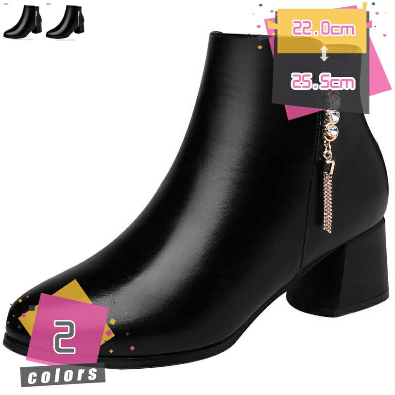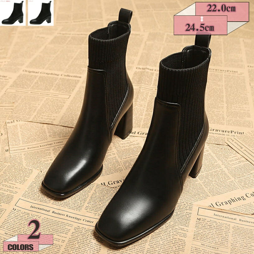 1000円OFFクーポン 太ヒール ストレッチ ショートブーツ 7センチヒール レディース 黒 歩き・・・