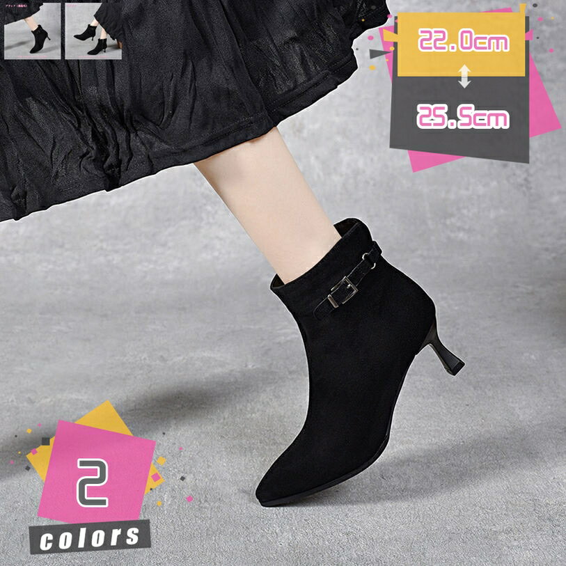 ショートブーツ パンプス ハイヒール 黒 ベージュ 歩きやすい 痛くない ポインテッドトゥ 太ヒール・・・