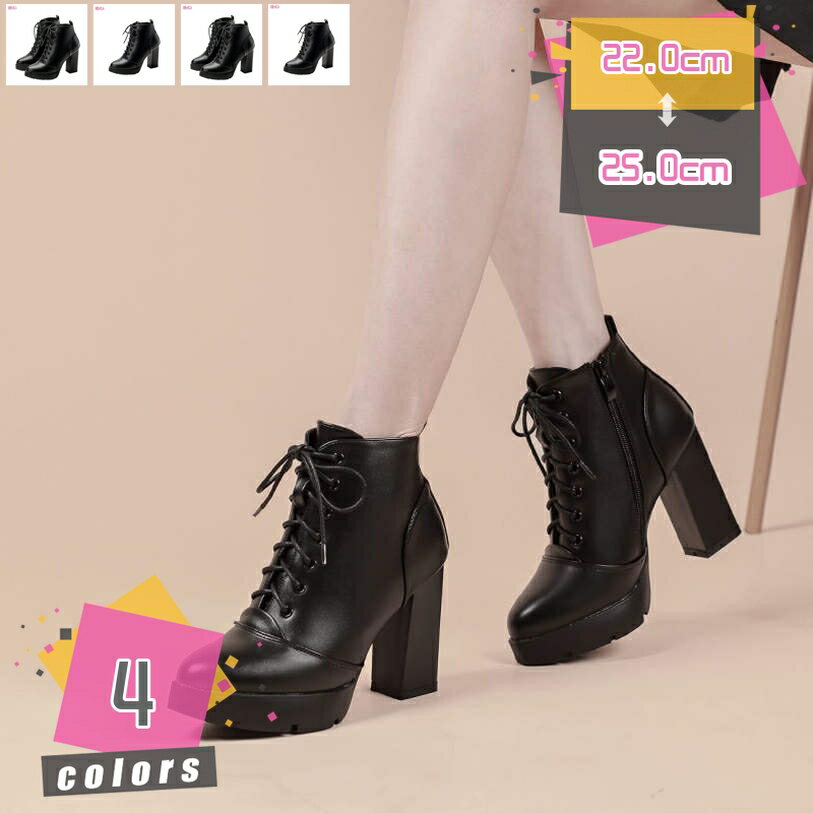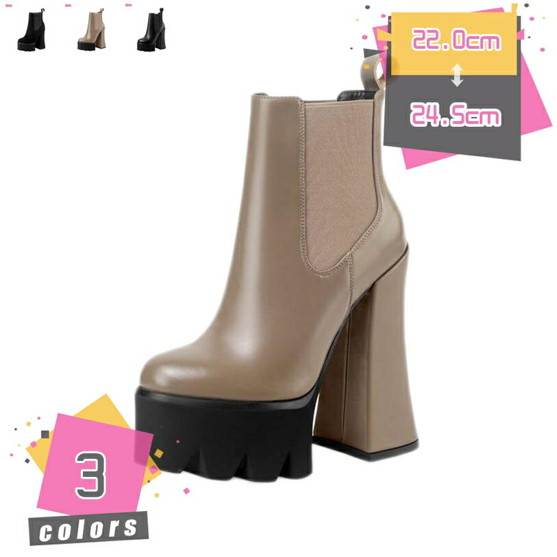 ハイヒール 靴 太ヒールブーツ ハイヒールブーツ ハイ太ヒール 厚底ヒール ブーツ レディース 厚底・・・