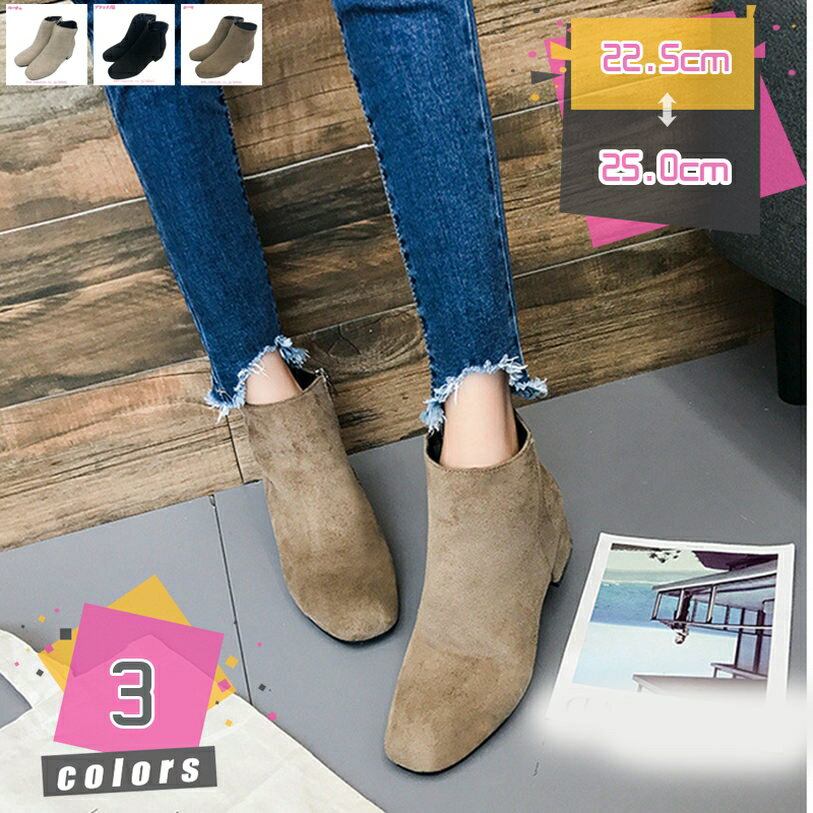 チャンキー ヒール ショートブーツ ファスナー 太ヒール レディース スエード ウッドヒール スクエ・・・