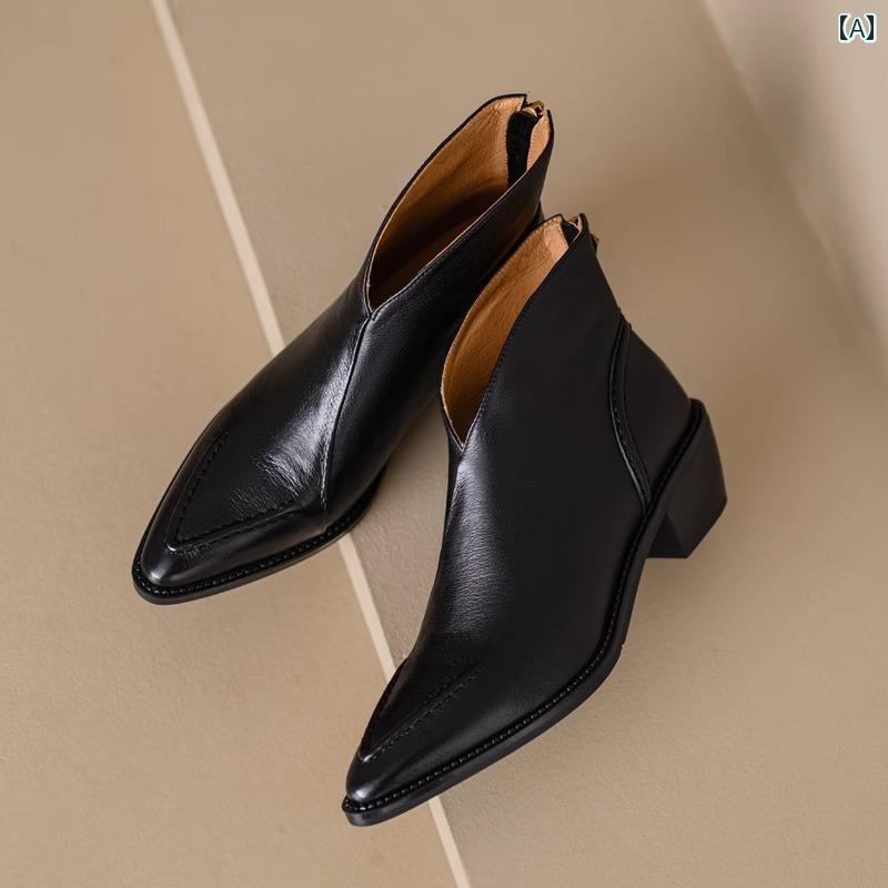 ショート ブーツ レディース 2024秋冬 牛革 バック ジッパー ショート ミドル ヒール ブーツ・・・