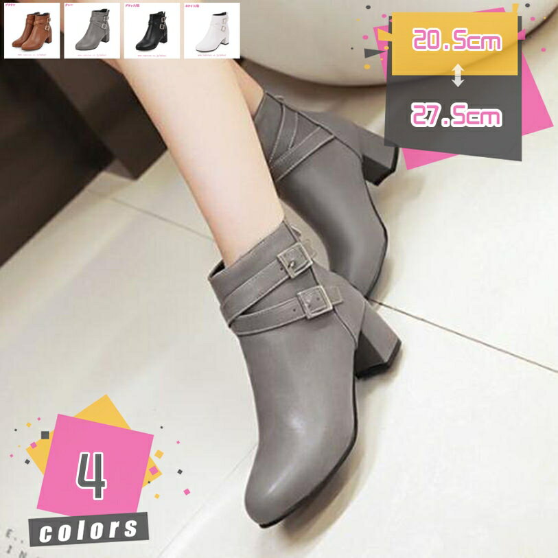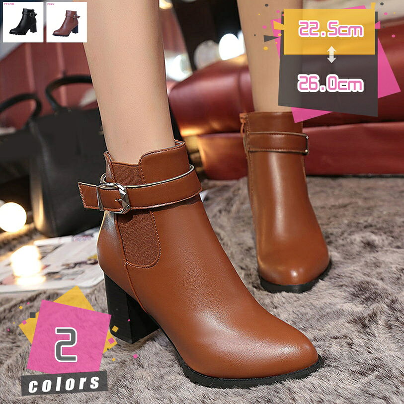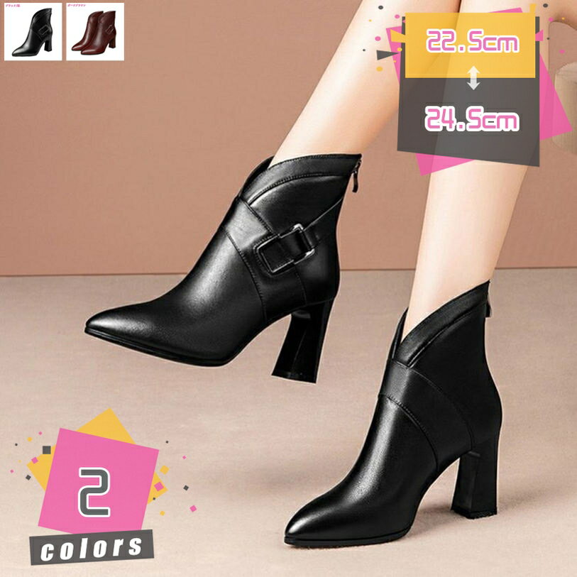 レディース 太ヒール ブーツ ショートブーツ 歩きやすい シンプル ブーティ バックジッパー ポイン・・・