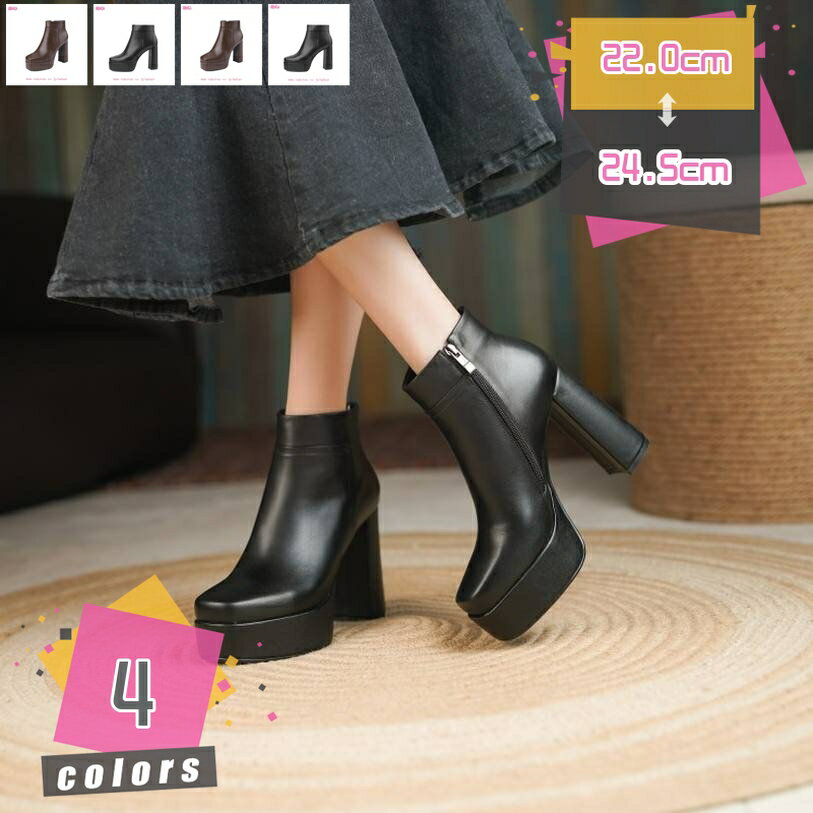 レディース 厚底 前厚 太ヒール ブーツ ショートブーツ ショートブーティー 歩きやすい シンプル ・・・