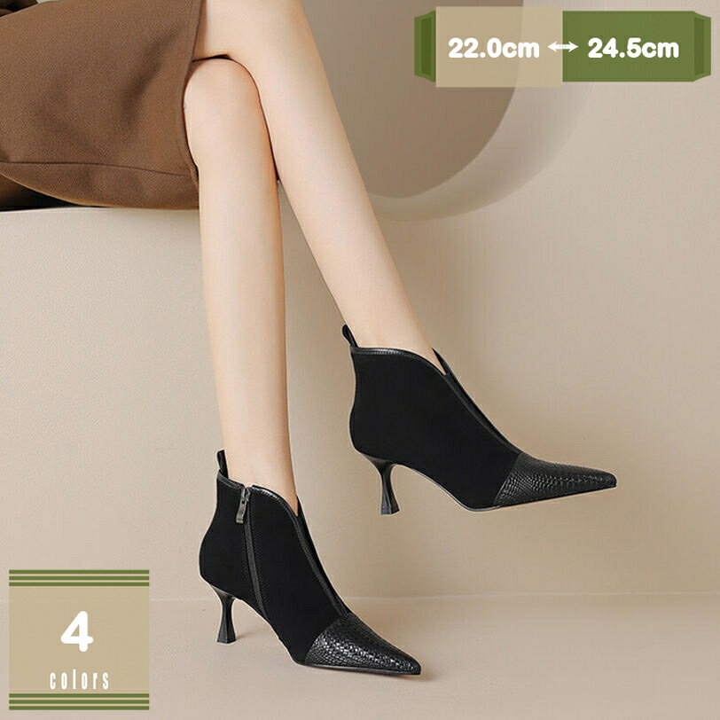 ショートブーツ ブーツ レディース ハイヒール シンプル 通学通勤 ピンヒール アンクルブーツ 歩き・・・