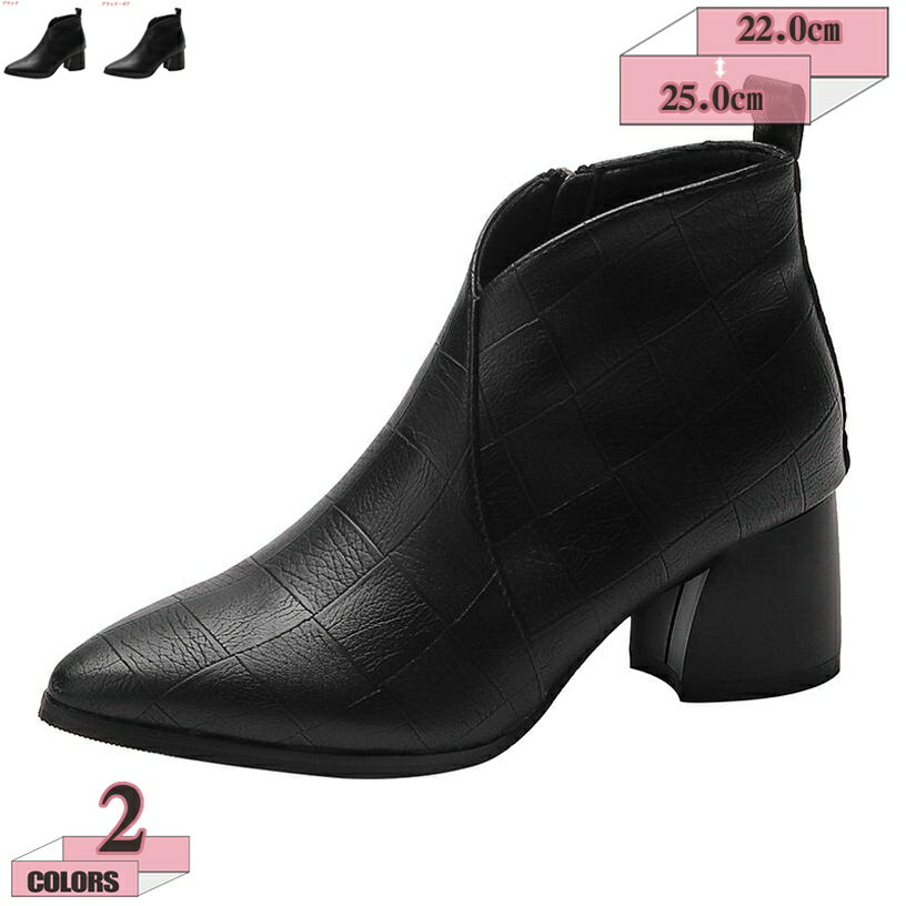 1000円OFFクーポン ブーティ 大きいサイズ 歩きやすい ショートブーツ 太ヒール 5.5cm ・・・