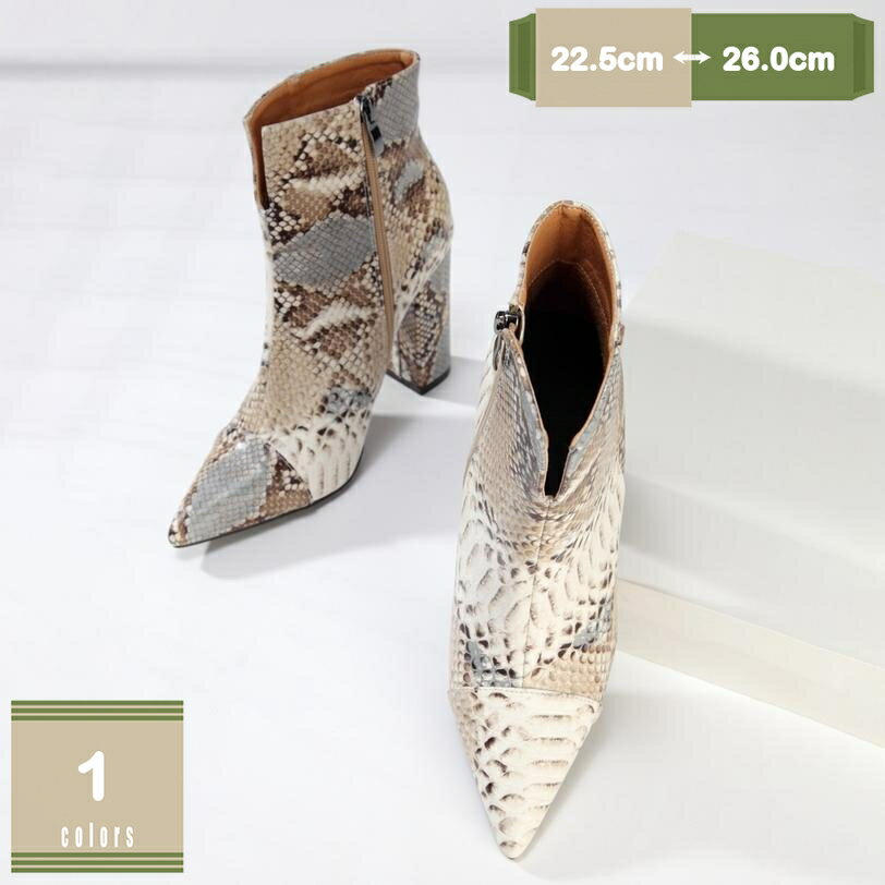 フロントVカット パイソン柄 ショートブーツ レディース 大きいサイズ ヒールブーツ 10cmヒール・・・