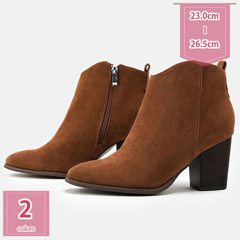 歩きやすい 美脚 ショートブーツ レディース スエード調 ブーティ チャンキーヒール ポインテッドト・・・