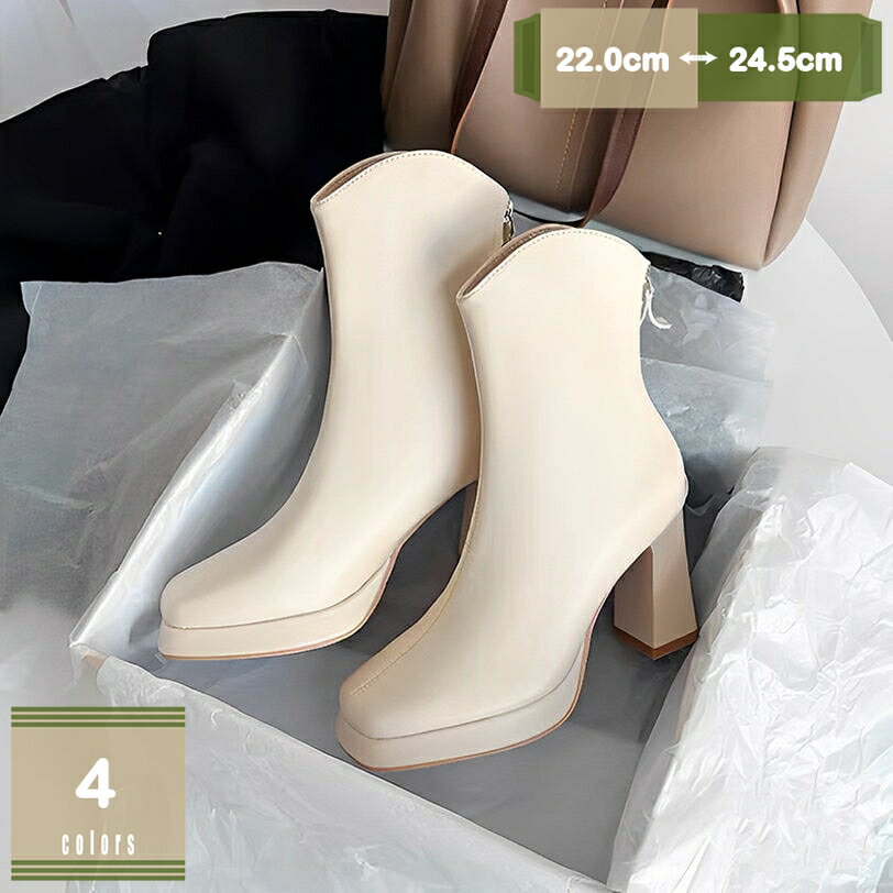 1000円OFFクーポン ショートブーツ レディース ハイヒール 黒 スクエアトゥ ストーム付き ブ・・・