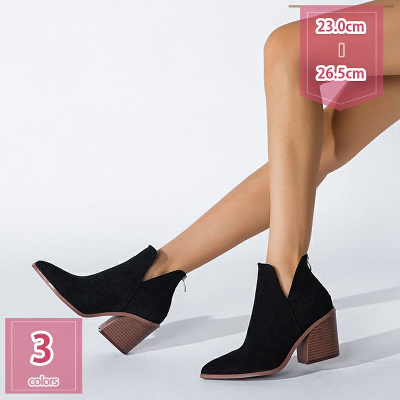 777円OFFクーポン 歩きやすい 太ヒール ショートブーツ レディース Vカット 美脚 サイドゴア・・・