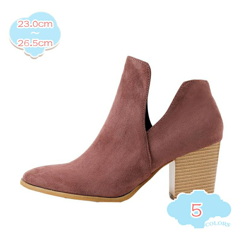 777円OFFクーポン ショートブーツ レディース パンプス Vカット 太めヒール ポインテッドトゥ・・・