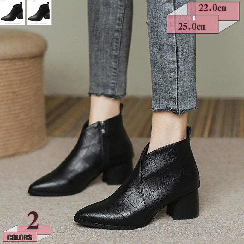 777円OFFクーポン ブーティ ブーツ ポインテッドトゥ 歩きやすい チャンキーヒール ブーティ ・・・