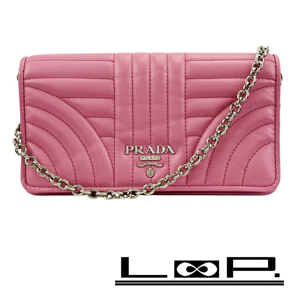 プラダ ■美品■ ダイアグラム チェーン ショルダー ウォレット ファッション レザー ピンク 1Z・・・