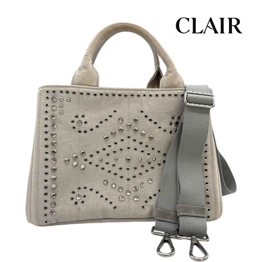 【中古】プラダ カナパ デニム カナパスタッズ トート ヌーブ グレー 2wayバッグ ショルダーバ・・・