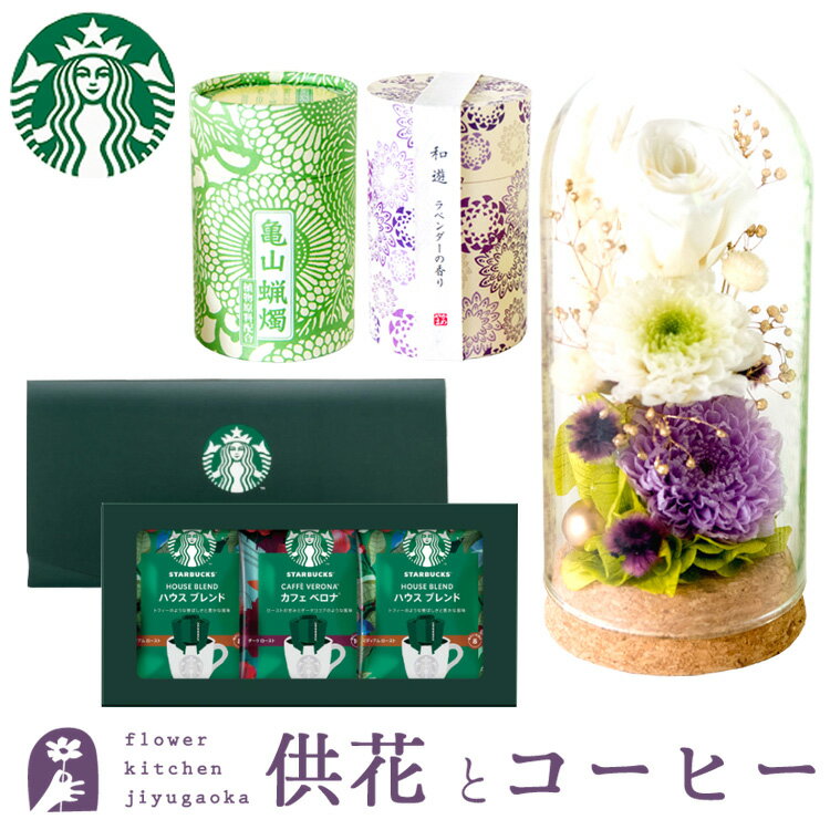 【お供え】お供えプリザーブドフラワー「静香」 と『和遊』ローソク線香セット+スターバックスコーヒギフ・・・