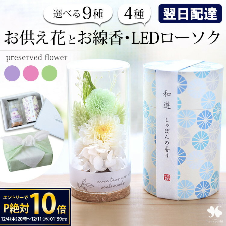 【12/4 20時~★楽天SS×P10倍】翌日配達 お供え 花 線香 セット プリザーブドフラワー ・・・