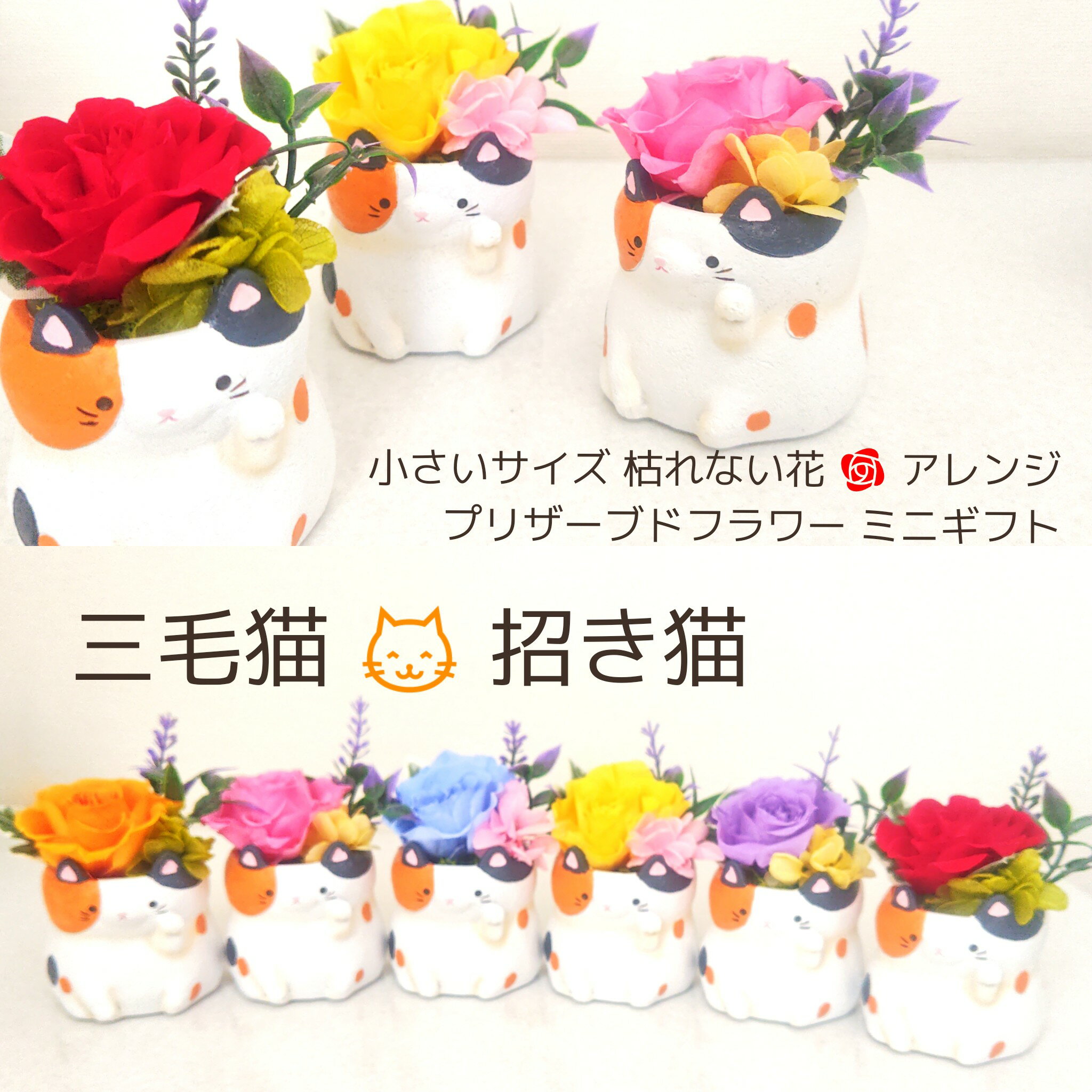 猫 三毛猫 ねこ ネコ 招き猫 プリザーブドフラワー 誕生日 プレゼント 小さい 花 ギフト ミニサ・・・